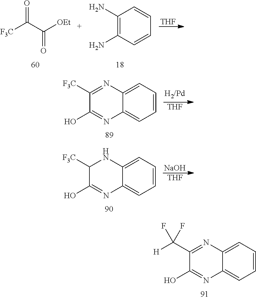 - HMCWKTABBJDYTO-UHFFFAOYSA-N 3-(1,1-difluorobut-3-enyl)-1H-quinoxalin-2-one Chemical compound OC1=C(N=C2C=CC=CC2=N1)C(F)(F)CC=C HMCWKTABBJDYTO-UHFFFAOYSA-N 0.000 description 13