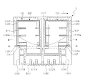 The at least one first source electrode pad 1123 is exposed through the first upper layer 1121. The first gate electrode pads 1124 and 1124 a are spaced apart from the at least one first source electrode pad 1123 and is also exposed through the first upper layer 1121. The first gate electrode pads 1124 and 1124 a are arranged at the corresponding corners (the lower-left corner and the lower-right corner in the figure), however, the present invention is not so restricted. In addition, the at least one first drain electrode pad 1125 is exposed through the first lower layer 1122. The first semiconductor structure 1126 is located between the first source electrode pad 1123 and the first drain electrode pad 1125. The first semiconductor structure 1126 is composed of the conventional circuit architecture, and thus is not repeated here.