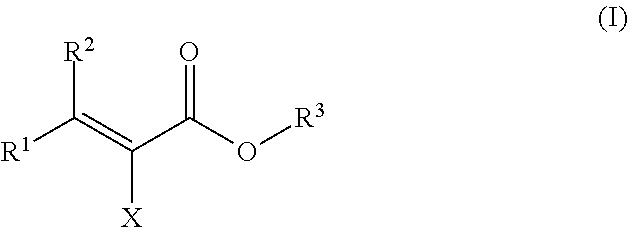 Further, as examples of methods for producing a fluorine-containing acrylic acid derivative, for example, Patent Document 1 discloses a method of reacting a 2-fluoropropionic ester with a nitrogen-bromine-bond-containing brominating agent in the presence of a radical initiator, and Patent Document 2 discloses a process for converting a 3-halo-2-fluoropropionic acid derivative to a substituted 2-fluoroacrylic acid derivative in the presence of at least one kind of base and at least one kind of polymerization inhibitor.