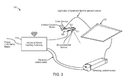 According to an aspect, the PCB may include sensors. The sensors include an upward facing color/light sensor and a downward facing/environmental sensor. The upward facing sensor may be positioned on the first surface 302 of the PCB, i.e., at the PCB end of the light pipe, facing the light pipe and receiving light emitted by the luminaire 112 and propagated via the light pipe. In an embodiment, the environmental sensor is located on the opposite side/second surface 304 of the PCB and is facing downwards towards the environment. The PCB may be connected to the gateway 102 via sensor interface links.