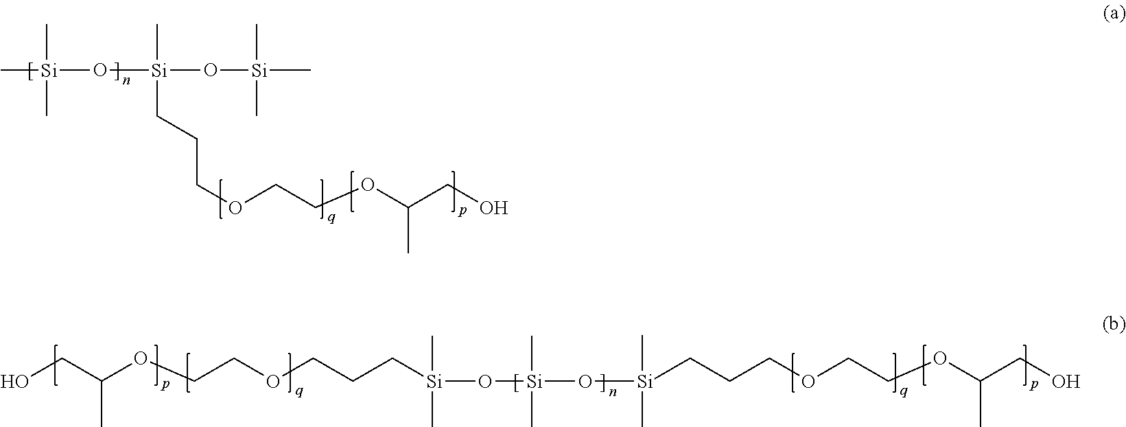 On the other hand, in Comparative Example C1 containing no polyorganosiloxane, Comparative Example C2 containing no polyurethane, Comparative Example C3 containing no infrared ray absorbing agent in the lower layer, and Comparative Examples C4 and C5 which used the developers that do not fall within the scope of the invention, generation of development wastes and background stains were observed.