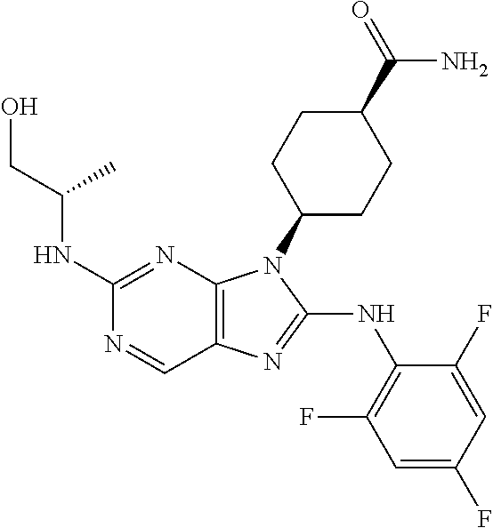 | US8158635B2 (en) | 2006-10-27 | 2012-04-17 | Signal Pharmaceuticals, Llc | Solid forms comprising 4-[9-(tetrahydro-furan-3-yl)-8-(2,4,6-trifluoro-phenylamino)-9H-purin-2-ylamino]-cyclohexan-1-ol, compositions thereof, and uses therewith |
