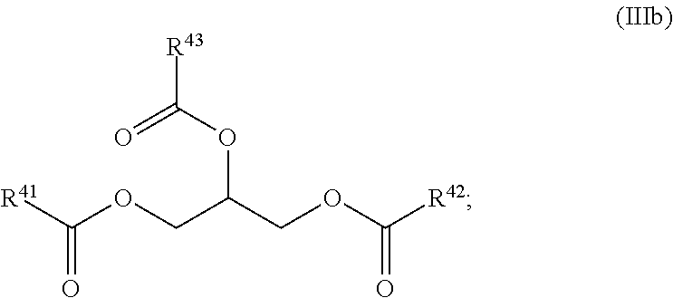 43 is 8-nonenyl, 8-decenyl, 8-undecenyl, 8-dodecenyl, 8,11-dodecadienyl, 8,11-tridecadienyl, 8,11-tetradecadienyl, 8,11-pentadecadienyl, 8,11,14-pentadecatrienyl, 8,11,14-hexadecatrienyl, 8,11,14-heptadecatrienyl, or 8,11,14-octadecatrienyl; and (b) reacting the monomer compounds of formula (IIIa) with the monomer compounds of formula (IIIb) in the presence of the metathesis catalyst to form the glyceride polymer composition.
