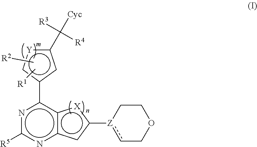 - JJEXYMGNEIIEPL-HSZRJFAPSA-N (R)-[4-fluoro-3-(7-morpholin-4-ylpyrido[3,2-d]pyrimidin-4-yl)phenyl]-(3-methylpyrazin-2-yl)methanol Chemical compound Cc1nccnc1[C@H](O)c1ccc(F)c(c1)-c1ncnc2cc(cnc12)N1CCOCC1 JJEXYMGNEIIEPL-HSZRJFAPSA-N 0.000 claims description 2