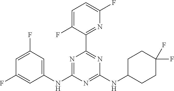 - (26) N-[[4-[[[4-(cyclopropylamino)-6-(2-pyridinyl)-1,3,5-triazin-2-yl]amino]methyl]cyclohexyl]methyl]-4-fluoro-benzenesulfonamide;