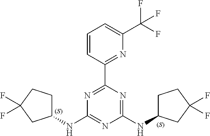 Compound N2-(3,3-difluorocyclopentyl)-N4-(2-(trifluoromethyl)pyridin-4-yl)-6-(4-(trifluoromethyl)thiazol-2-yl)-1,3,5-triazine-2,4-diamine
