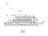 - FIG. 3 is a cross-sectional view of a prior-art mounted LCoS panel 300 that includes LCoS panel 200 electrically connected to a flexible printed circuit assembly (FPCA) 302 .