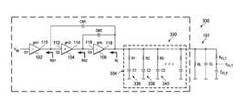 - the third stage 106 has a transconductance gmL and has a resistance RL looking into the output 118 .