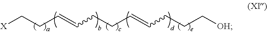 As used herein, the term “alkene” refers to a straight chain or branched hydrocarbon having at least 2 carbon atoms and at least one double bond. A “terminal” alkene refers to an alkene wherein the double bond is between two carbon atoms at the end of the hydrocarbon chain (e.g., hex-1-ene). An “internal” alkene refers to an alkene wherein the double bond is between two carbon atoms that are not at the end of the hydrocarbon chain (e.g., (E)-hex-3-ene and (Z)-hex-3-ene). An “α,ω-alkenol” refers to a hydroxy-substituted terminal alkene having the formula (CH2═CH)(CH2)mOH, wherein m is an integer ranging from 1-30, such as 2-18. The term “alkenyl” refers to a straight chain or branched hydrocarbon radical having at least 2 carbon atoms and at least one double bond. Alkenyl can include any number of carbons, such as C2, C2-3, C2-4, C2-5, C2-6, C2-7, C2-8, C2-9, C2-10, C3, C3-4, C3-5, C3-6, C4, C4-5, C4-6, C5, C5-6, and C6. Alkenyl groups can have any suitable number of double bonds, including, but not limited to, 1, 2, 3, 4, 5 or more. Examples of alkenyl groups include, but are not limited to, vinyl (ethenyl), propenyl, isopropenyl, 1-butenyl, 2-butenyl, isobutenyl, butadienyl, 1-pentenyl, 2-pentenyl, isopentenyl, 1,3-pentadienyl, 1,4-pentadienyl, 1-hexenyl, 2-hexenyl, 3-hexenyl, 1,3-hexadienyl, 1,4-hexadienyl, 1,5-hexadienyl, 2,4-hexadienyl, or 1,3,5-hexatrienyl. Alkenes and alkenyl groups can be optionally substituted with one or more moieties selected from halo, alkyl, and alkynyl.
