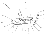 - the propeller 26 is specifically adapted so that the adhesion force F is greater than the gravity force applied to the vehicle 10 , to ensure a continuous contact of the tracks 20 with the riding surface. Accordingly, as shown in FIGS.
