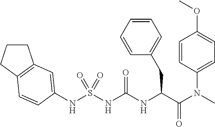 - ULJQHDZNEDMGKW-QHCPKHFHSA-N COC1=CC=C(NS(=O)(=O)NC(=O)N[C@@H](CC2=CC=CC=C2)C(=O)N(C)C2=CC=C(OC)C=C2)C=C1 Chemical compound COC1=CC=C(NS(=O)(=O)NC(=O)N[C@@H](CC2=CC=CC=C2)C(=O)N(C)C2=CC=C(OC)C=C2)C=C1 ULJQHDZNEDMGKW-QHCPKHFHSA-N 0.000 description 2
