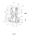 FIG. 4 shows a sectional view of a delivery plunger of a retractable syringe;