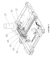 - the device has a three-level transmission chain, and comprises a drive motor 27 , a worm and worm wheel 20 , a clutch 21 , a first chain wheel 22 , a second chain wheel 23 , a chain 24 , a first gear 25 , and a second gear 26 .