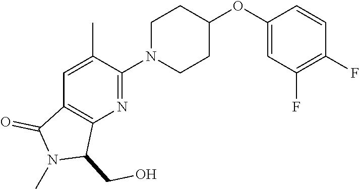 Muscarinic receptors in the central nervous system play a critical role in mediating higher cognitive processing and control of dopamine release. Administration of nonselective muscarinic antagonists can induce cognitive deficits and psychosis in humans suggesting that mAChR activation may provide pro-cognitive and antipsychotic efficacy. Accordingly, several mAChR agonists have been developed and entered clinical studies for the treatment of cognitive and psychiatric symptoms associated with Alzheimer's and neuropsychiatric diseases such as schizophrenia. (Carruthers, Neuroscience & Biobehavioral Rev., 2015, 55: 393-402; Jones, et al. Neuropsychopharmacology, 2012, 37: 16-42). One of these, the M1/M4 preferring mAChR agonist xanomeline was assessed in patients with Alzheimer's disease, and while showing a trend for improving cognitive deficits, did produce robust and dose-dependent reductions in hallucinations, delusions, vocal outbursts, and other behavioral disturbances in these patients. A subsequent study in patients with schizophrenia demonstrated that xanomeline produced robust improvements in positive, negative and cognitive symptoms. (Bodick, et al., Arch Neurol. 1997; 54: 465-73). Xanomeline, in addition to other mAChR agonists have been demonstrated to produce robust antipsychotic-like effects in a number of preclinical paradigms. For instance, xanomeline, reverses a number of dopamine driven behaviors, including amphetamine induced locomotion in rats, apomorphine induced climbing in mice, dopamine agonist driven turning in unilateral 6-OH-DA lesioned rats and amphetamine induced motor unrest in monkeys (without EPS liability). It also has been shown to inhibit A10, but not A9, dopamine cell firing and conditioned avoidance and induces c-fos expression in prefrontal cortex and nucleus accumbens, but not in striatum in rats. These data are all suggestive of an atypical antipsychotic-like profile. Subsequent studies with M4 knockout mice have demonstrated that the antipsychotic-like effects of xanomeline are mediated by the M4 receptor. Despite these promising clinical and preclinical effects, xanomeline, like other muscarinic agonists, ultimately failed in clinical development due to lack of adequate receptor subtype selectivity resulting in dose-limiting side effects including disturbed gastrointestinal motility, bradycardia, nausea and vomiting.