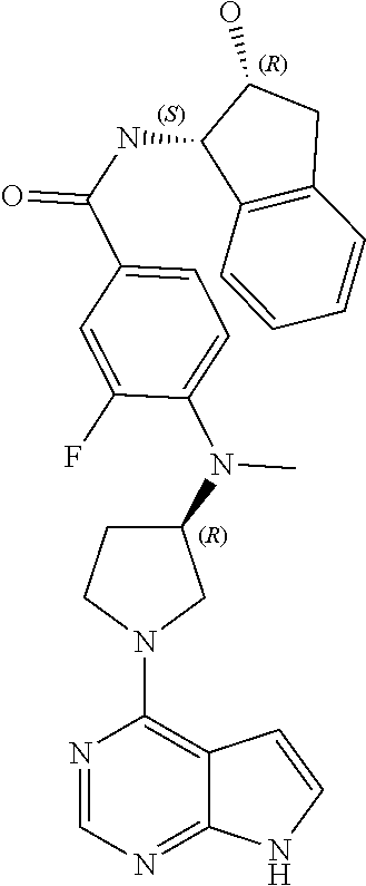In addition, in above JAK1 kinase assay, IC50 values for compounds 1, 16, 21, 30, 33, 36, 37, 42, 67, 68, 77, 86, 104, 105, 106, 119, 121, 122, 123, 124, 125, 127, 128, 144, 154, 155, 161, 202, 214, 215, 217, 218, 219, 233, 234, 236, 237, 238; 239, 241, 242, 243, 245, 246, 247, 251, 252, 253, 254, 259, are in the range from 0.001 uM to less than 0.1 uM.