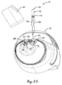 FIG. 22 is a detailed, partially exploded view of the snub line mechanism;