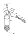 FIG. 9 illustrates a partially exploded front perspective view of an embodiment of a priming device in accordance with aspects of the present disclosure.