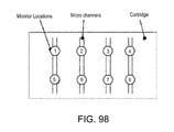 - (4) In an antibody-antigen assay device having multiple parallel channels receiving portions of the same sample, one or more nucleic acid probes may be incorporated in each channel to detect a tracer, according to feature (1) above, thus to obtain indication of proper operation of each channel, which may be conducting a different assay from the rest. An example is given in FIG. 108.