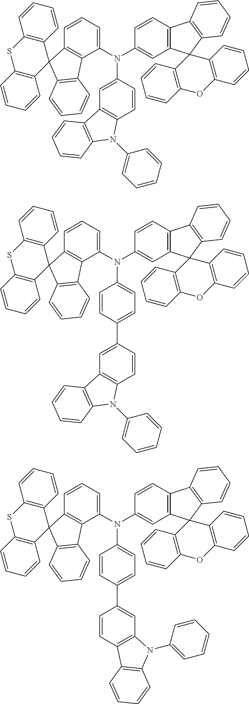 - XMSOWRIYFVNBPG-UHFFFAOYSA-N C1=CC(C2=CC3=C(C=C2)C2(C4=C(C=CC=C4)OC4=C2C=CC=C4)C2=C3C=CC=C2)=CC(N(C2=CC=C3C(=C2)C2(C4=C3C=CC=C4)C3=C(C=CC=C3)C3=C2C=CC=C3)C2=CC=CC3=C2C2=C(C=CC=C2)C32C3=C(C=CC=C3)OC3=C2C=CC=C3)=C1.C1=CC=C(C2=CC=C(C3=C(N(C4=CC=CC(C5=CC6=C(C=C5)C5(C7=C(C=CC=C7)OC7=C5C=CC=C7)C5=C6C=CC=C5)=C4)C4=CC=CC5=C4C4=C(C=CC=C4)C54C5=C(C=CC=C5)OC5=C4C=CC=C5)C=CC=C3)C=C2)C=C1.C1=CC=C(N(C2=CC=CC(C3=CC4=C(C=C3)C3(C5=C(C=CC=C5)OC5=C3C=CC=C5)C3=C4C=CC=C3)=C2)C2=CC=CC3=C2C2=C(C=CC=C2)C32C3=C(C=CC=C3)OC3=C2C=CC=C3)C=C1 Chemical compound C1=CC(C2=CC3=C(C=C2)C2(C4=C(C=CC=C4)OC4=C2C=CC=C4)C2=C3C=CC=C2)=CC(N(C2=CC=C3C(=C2)C2(C4=C3C=CC=C4)C3=C(C=CC=C3)C3=C2C=CC=C3)C2=CC=CC3=C2C2=C(C=CC=C2)C32C3=C(C=CC=C3)OC3=C2C=CC=C3)=C1.C1=CC=C(C2=CC=C(C3=C(N(C4=CC=CC(C5=CC6=C(C=C5)C5(C7=C(C=CC=C7)OC7=C5C=CC=C7)C5=C6C=CC=C5)=C4)C4=CC=CC5=C4C4=C(C=CC=C4)C54C5=C(C=CC=C5)OC5=C4C=CC=C5)C=CC=C3)C=C2)C=C1.C1=CC=C(N(C2=CC=CC(C3=CC4=C(C=C3)C3(C5=C(C=CC=C5)OC5=C3C=CC=C5)C3=C4C=CC=C3)=C2)C2=CC=CC3=C2C2=C(C=CC=C2)C32C3=C(C=CC=C3)OC3=C2C=CC=C3)C=C1 XMSOWRIYFVNBPG-UHFFFAOYSA-N 0.000 description 1