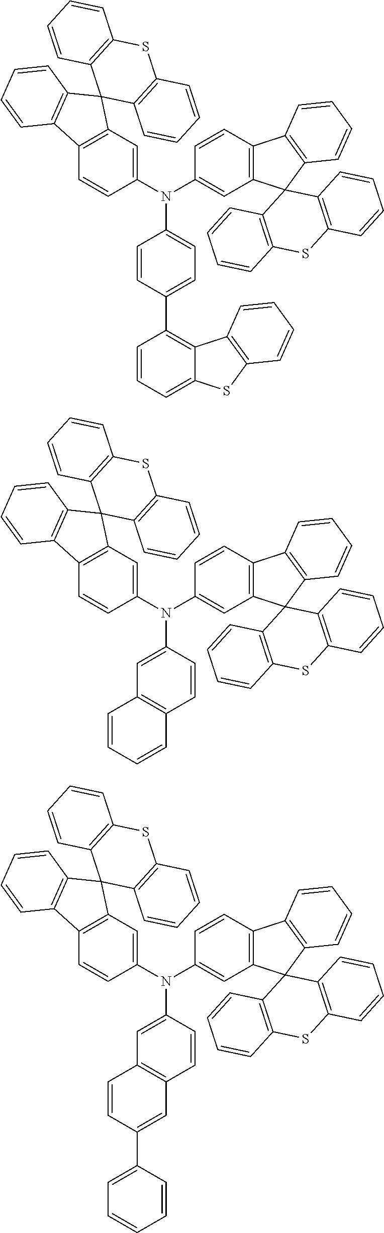 - AQKIEYBUFGBSJZ-UHFFFAOYSA-N C1=CC(N(C2=CC=C(C3=C/C=C4\C5=C(C=CC=C5)S\C4=C\3)C=C2)C2=CC=CC3=C2C2=C(C=CC=C2)C32C3=C(C=CC=C3)OC3=C2C=CC=C3)=CC(C2=CC=CC3=C2C2=C(C=CC=C2)C32C3=C(C=CC=C3)OC3=C2C=CC=C3)=C1.C1=CC(N(C2=CC=C(C3=C4C(=CC=C3)OC3=C4C=CC=C3)C=C2)C2=CC=CC3=C2C2=C(C=CC=C2)C32C3=C(C=CC=C3)OC3=C2C=CC=C3)=CC(C2=CC=CC3=C2C2=C(C=CC=C2)C32C3=C(C=CC=C3)OC3=C2C=CC=C3)=C1.C1=CC(N(C2=CC=C(C3=C4C(=CC=C3)SC3=C4C=CC=C3)C=C2)C2=CC=CC3=C2C2=C(C=CC=C2)C32C3=C(C=CC=C3)OC3=C2C=CC=C3)=CC(C2=CC=CC3=C2C2=C(C=CC=C2)C32C3=C(C=CC=C3)OC3=C2C=CC=C3)=C1 Chemical compound C1=CC(N(C2=CC=C(C3=C/C=C4\C5=C(C=CC=C5)S\C4=C\3)C=C2)C2=CC=CC3=C2C2=C(C=CC=C2)C32C3=C(C=CC=C3)OC3=C2C=CC=C3)=CC(C2=CC=CC3=C2C2=C(C=CC=C2)C32C3=C(C=CC=C3)OC3=C2C=CC=C3)=C1.C1=CC(N(C2=CC=C(C3=C4C(=CC=C3)OC3=C4C=CC=C3)C=C2)C2=CC=CC3=C2C2=C(C=CC=C2)C32C3=C(C=CC=C3)OC3=C2C=CC=C3)=CC(C2=CC=CC3=C2C2=C(C=CC=C2)C32C3=C(C=CC=C3)OC3=C2C=CC=C3)=C1.C1=CC(N(C2=CC=C(C3=C4C(=CC=C3)SC3=C4C=CC=C3)C=C2)C2=CC=CC3=C2C2=C(C=CC=C2)C32C3=C(C=CC=C3)OC3=C2C=CC=C3)=CC(C2=CC=CC3=C2C2=C(C=CC=C2)C32C3=C(C=CC=C3)OC3=C2C=CC=C3)=C1 AQKIEYBUFGBSJZ-UHFFFAOYSA-N 0.000 description 1
