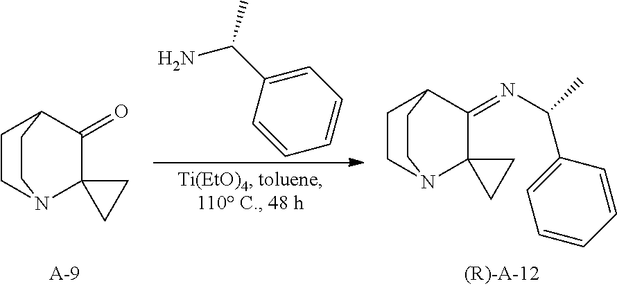 FIG. 2: Illustrates a 3-D representation of the formed crystal of (R)—N—((R)-1-phenylethyl)-1′-azaspiro[cyclopropane-1,2′-bicyclo[2.2.2]octan]-3′-amine bis(4-methylbenzenesulfonate).