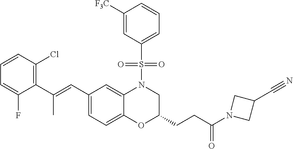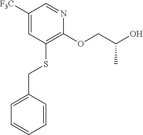 Diastereomeric mixtures can be separated into their individual diastereomers on the basis of their physical chemical differences by methods known to those skilled in the art, such as, for example, by chromatography and/or fractional crystallization. Enantiomers can be separated by converting the enantiomeric mixture into a diastereomeric mixture by reaction with an appropriate optically active compound (e.g., chiral auxiliary such as a chiral alcohol or Mosher's acid chloride), separating the diastereomers and converting (e.g., hydrolyzing) the individual diastereomers to the corresponding pure enantiomers. Alternatively, a particular enantiomer of a compound of the present invention may be prepared by asymmetric synthesis. Still further, where the molecule contains a basic functional group (such as amino) or an acidic functional group (such as carboxylic acid) diastereomeric salts are formed with an appropriate optically-active acid or base, followed by resolution of the diastereomers thus formed by fractional crystallization or chromatographic means known in the art, and subsequent recovery of the pure enantiomers.