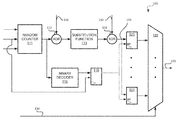 The XOR component 112 may be coupled to a substitution function 113. For example, the output of the XOR component 112 may be provided to the substitution function 113. In some embodiments, the substitution function 113 may input values to output values (e.g., a function that replaces an input value with a corresponding output value). For example, the substitution function 113 may be a predefined substitution box. Thus, the combination of the output of the random counter 111 and the input mask 131 may be mapped to a particular output value that is defined by the substitution function 113 that provides the mapped output value. In some embodiments, the substitution function 113 may be selected from multiple substitution functions. For example, a different substitution function 113 may be selected for a particular stage of a cryptographic operation that is to be performed. In some embodiments, the cryptographic operation may be a DES cryptographic operation that uses eight different substitution functions, and a different substitution function 113 may be selected to be used for each of the different stages of the DES cryptographic operation. For example, at a first time, a first substitution function may be used to provide the values of the entries of a masked substitution box and at a second time a second substitution function may be used to provide the values of the entries of the masked substitution box. Thus, the architecture may include multiple substitution function 113 that may each be separately used for different cryptographic operations.