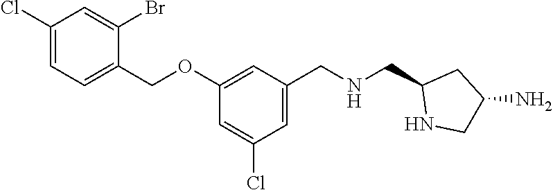 - JNXBEUZJSHWZDZ-DLBZAZTESA-N N[C@@H]1CN[C@@H](CNCC2=CC=CC(OCC3=CC=C(Cl)C=C3Br)=C2)C1 Chemical compound N[C@@H]1CN[C@@H](CNCC2=CC=CC(OCC3=CC=C(Cl)C=C3Br)=C2)C1 JNXBEUZJSHWZDZ-DLBZAZTESA-N 0.000 description 3