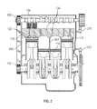 - Each of the cylinders 112 has at least two valves 132 actuated by a camshaft 134 rotating in time with the crankshaft 116 .