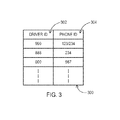 FIG. 3 shows an exemplary embodiment of a table that maintains associations of identifiers of drivers to identifiers of mobile communications devices.