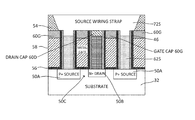 - Different dielectric caps formed on source, drain and gate, enabling wiring common terminals together with one contact wiring and thereby allowing greater transistor density.
