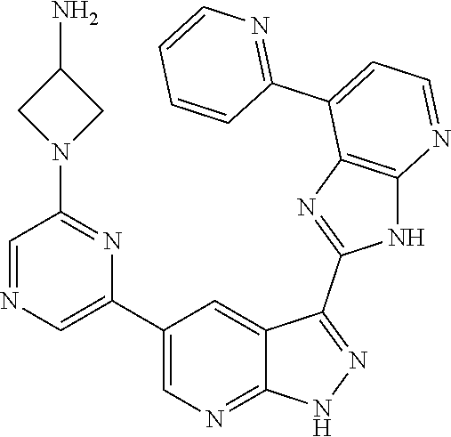 - LXJDVUQRYQVWHT-UHFFFAOYSA-N C1=CC(C2=CC=NC3=C2N=C(C2=NNC4=NC=C(C5=CCNCC5)C=C42)N3)=CN=C1 Chemical compound C1=CC(C2=CC=NC3=C2N=C(C2=NNC4=NC=C(C5=CCNCC5)C=C42)N3)=CN=C1 LXJDVUQRYQVWHT-UHFFFAOYSA-N 0.000 description 2