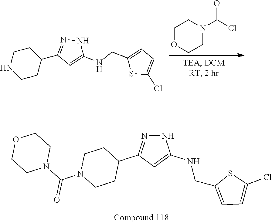 - BURUKUAHEIKMHQ-UHFFFAOYSA-N C.O=C(Cl)C1=CSC=N1.O=C(N1CCOCC1)N1CC(C2=NN(C(=O)C3=CSC=N3)C(CCC3=CC=C(Cl)S3)=C2)C1.O=C(N1CCOCC1)N1CC(C2=NNC(CCC3=CC=C(Cl)S3)=C2)C1 Chemical compound C.O=C(Cl)C1=CSC=N1.O=C(N1CCOCC1)N1CC(C2=NN(C(=O)C3=CSC=N3)C(CCC3=CC=C(Cl)S3)=C2)C1.O=C(N1CCOCC1)N1CC(C2=NNC(CCC3=CC=C(Cl)S3)=C2)C1 BURUKUAHEIKMHQ-UHFFFAOYSA-N 0.000 description 1