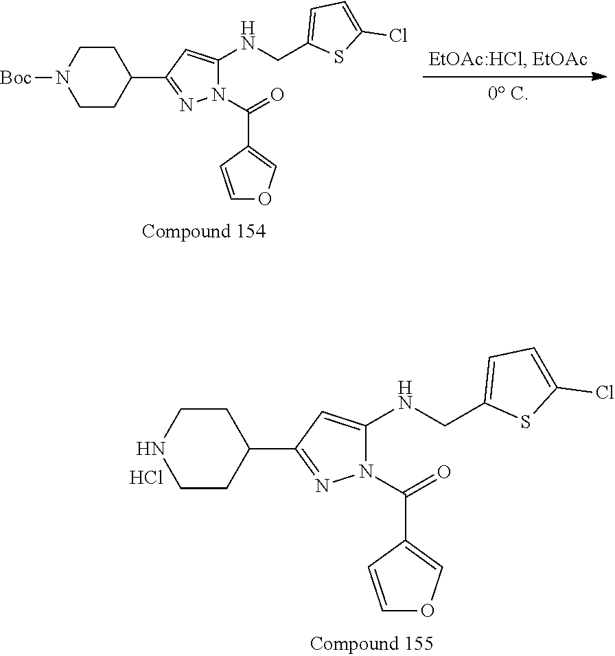 - MLMSQHPCSIIEPE-UHFFFAOYSA-N C.CS(=O)(=O)N1CC(C2=NN(C(=O)C3=CSC=N3)C(CCC3=CC=C(Cl)S3)=C2)C1.CS(=O)(=O)N1CC(C2=NNC(CCC3=CC=C(Cl)S3)=C2)C1.O=C(Cl)C1=CSC=N1 Chemical compound C.CS(=O)(=O)N1CC(C2=NN(C(=O)C3=CSC=N3)C(CCC3=CC=C(Cl)S3)=C2)C1.CS(=O)(=O)N1CC(C2=NNC(CCC3=CC=C(Cl)S3)=C2)C1.O=C(Cl)C1=CSC=N1 MLMSQHPCSIIEPE-UHFFFAOYSA-N 0.000 description 1