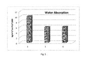 FIG. 5 is a chart showing the water absorption values of fiber cement composite material samples made in accordance with certain preferred embodiments compared to the control formulation.