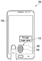 The processor 540 may determine an absolute position of an actually acquired fingerprint, based on the touch coordinates, the width and height information, and the orientation information acquired from the touch sensor. As shown in FIG. 7E, the processor 540 may provide the user with a feedback 795 indicating a region where an actual touch is made.