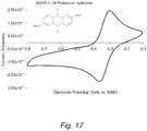 FIG. 17 provides a cyclic voltammogram for anthraquinone-2,6-disulfonic acid in 1M potassium hydroxide.