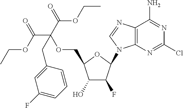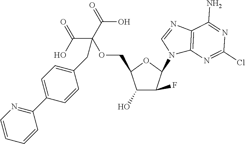 The ability of compounds to inhibit endogenous, cell-bound CD73 enzyme activity was demonstrated using SK-MEL-28 cells, which express CD73 on their surface. The day before the experiment, 5000 cells were plated per well in a 96-well plate. Cells were washed twice with 200 μL reaction buffer (20 mM HEPES, pH 7.4, 125 mM NaCl, 1 mM KCl, 2 mM MgCl2, 10 mM glucose) to remove residual inorganic phosphate. After washing, assays contained serial dilutions of test compounds and 100 μM of AMP in a total volume of 200 μL reaction buffer, with a final DMSO concentration ≤0.5%. After 30 minutes at room temperature, supernatant was removed from the cells. A volume of 100 μL Malachite Green (Cell Signaling Technology, Cat. No. 12776) was added to 25 μL of supernatant. After 5 minutes at room temperature, absorbance at 630 nm was determined on a microplate spectrophotometer. The concentration of inorganic phosphate was determined using a phosphate standard curve to determine IC50. Table 5 provides the IC50 data of a representative number of compounds.