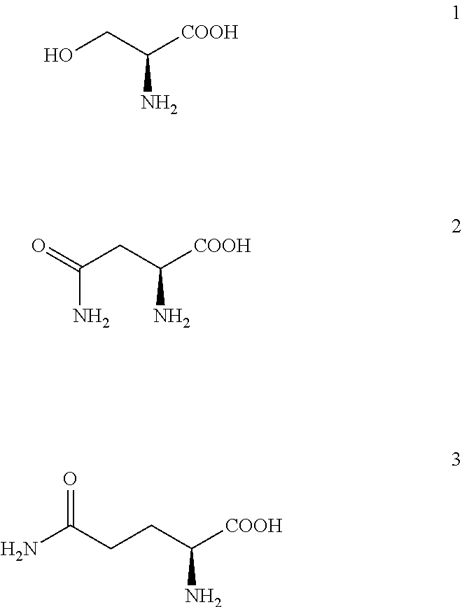 Relative molar ratio (n/n) of amino acids L-serine, L-asparagine, L-glutamine, or their various mixtures, versus auxiliary ingredients L-arginine, glycine, imidazole, or their various mixtures can be from 10:1 to 1:10, preferably 3:1 to 1:3, and most preferably 1:1.