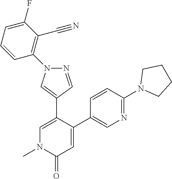 2-cyclopropyl-6-(4-(1′-cyclopropyl-1- methyl-2′,6-dioxo-1,1′,2′,6-tetrahydro- [4,4′-bipyridin]-3-yl)- 1H-pyrazol-1- yl)benzonitrile |