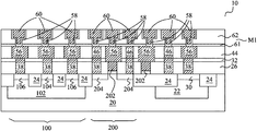 The requirement in the density of the M0_PO patterns, however, is difficult to achieve. There may exist large chip areas that do not include M0_PO patterns therein. For example, in diodes (which often occupy large chip areas) and guard rings, there may not be M0_PO patterns. Although dummy M0_PO patterns may be inserted in these regions to increase the pattern density, the inserted dummy M0_PO patterns occupy the chip areas that otherwise could be useful. Therefore, the insertion of the dummy M0_PO patterns causes the reduction in the device utilization rate. In some devices such as I/O cells and electrostatic discharge (ESD) circuits, the reduction in the device utilization rate may seriously impact the ESD ability and the latch-up performance of circuits.