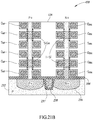 FIG. 2B is a cross-sectional view of vertical GAA TFETs following formation of conventional front side and back side linear contacts taken from U.S. Pat. No. 9,385,195.