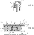 Referring to FIG. 24E-2, an alternative balloon tube 718′ has a plurality of pre-curved balloon shapes 720′ coupled together by sealing zones 722 to facilitate forming and/or keeping the balloon/core assembly in a helical configuration. The overall configuration of alternative balloon tube 718′ is straight, and it may be beneficial to provide asymmetric corrugated transitions 725 between pre-curved balloon shapes 720′ and sealing zones 722. Corrugated transitions 725 may have a form analogous to that of a corrugated straw along at least an outer radial portion of the helix, and the balloon shapes may optionally have corrugations along this outer portion instead of or in addition to the pre-curvature shown schematically here. The balloon shapes, transitions, and sealing zones may be formed by blow molding within machined or printed tooling using medical balloon blowing techniques, by blow molding with the moving tooling of a corrugation system, or the like.