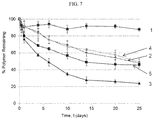 FIG. 7. Relative rates of hydrolysis of HexPhos oligomer 6d as measured by 31P NMR in acetate buffer, pH 5.0 (1); HEPES buffer, pH 7.4 (2); Tris EDTA, pH 9.0 (3); fetal bovine serum (4), and in the presence of phosphotriesterase I (5). All buffers were made at 0.1M final concentrations to avoid acidic hydrolysis products affecting pH.