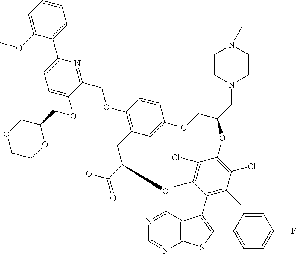 AMO-1 cells were obtained from the Deutsche Sammlung von Microorganismen und Zellkulturen (DSMZ, Braunschweig, Germany). The cells were cultured as monolayers in RPMI-1640 culture media (Invitrogen, Carlsbad, Calif.) that was supplemented with 10% Fetal Bovine Serum (FBS, Hyclone, Logan, Utah). To generate xenografts, 5×106 viable cells were inoculated subcutaneously into the right flank of immune deficient female SCID/bg mice (Charles River Laboratories. Wilmington, Mass.) respectively. The injection volume was 0.2 mL and composed of a 1:1 mixture of S MEM and Matrigel (BD, Franklin Lakes, N.J.). Tumors were size matched at approximately 200 mm3. MCL-1 inhibitors were formulated in 5% DMSO, 20% cremaphor EL and 75% D5W for injection and injected intraperitoneally. Injection volume did not exceed 200 μL. Alternatively, MCL-1 inhibitors were formulated in 5% DMSO, 10% cremaphor and 85% D5W for injection and injected intravenously. Injection volume did not exceed 200 μL. Therapy began within 24 hours after size matching of the tumors. Mice weighed approximately 21 g at the onset of therapy. Tumor volume was estimated two to three times weekly. Measurements of the length (L) and width (W) of the tumor were taken via electronic caliper and the volume was calculated according to the following equation: V=L×W2/2. Mice were euthanized when tumor volume reached 3,000 mm3 or skin ulcerations occurred. Eight mice were housed per cage. Food and water were available ad libitum. Mice were acclimated to the animal facilities for a period of at least one week prior to commencement of experiments. Animals were tested in the light phase of a 12-hour light: 12-hour dark schedule (lights on at 06:00 hours).