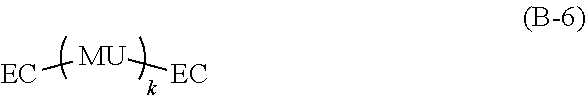 MU's each independently represent at least one selected from the group consisting of divalent groups of compounds represented by the above general formulas (B-1) to (B-5), two hydrogen atoms in MU are substituted by EC or MU,
