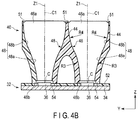 The reflector 40 includes a plurality of reflective surfaces 48 formed by inner surfaces of the side walls 44 and the inner surfaces of the outer wall 42. In other words, four reflective surfaces 48 are formed for each of the emission openings 46 a. Each of the reflective surfaces 48 extends from a side of the incidence opening 46 b to a side of the emission opening 46 a. Each of the reflective surfaces 48 is formed of a surface obtained by combining a plurality of curved surfaces. In the present embodiment, each of the reflective surfaces 48 includes a first curved surface 48 a extending from a side of the incidence opening 46 b to a middle part of the height direction of the reflector 40, and a second curved surface 48 b extending from the middle part to a side of the emission opening 46 a. The first curved surface 48 a is, for example, a curved surface which is convex to a central axis Z1 passing through the center of the emission opening 46 a or an optical axis C1 of the LED 36, and the second curved surface 48 b is a curved surface which is concave to the central axis Z1 or the optical axis C1.