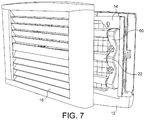 - the louver openings ( 18 ) are paired about a centre axis (x-x) to provide a downward and upward inflexion respectively of between 30 and 60°.