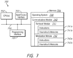Although the communications module 740, the retrieval module 741, and the modulation module 742 are illustrated as residing on a single computing device 700, it should be understood that in other embodiments, any combination of the communications module 740, the retrieval module 741, and the modulation module 742 reside in separate computing devices in various implementations. For example, in some implementations each of the communications module 740, the retrieval module 741, and the modulation module 742 reside on a separate computing device or in the cloud.