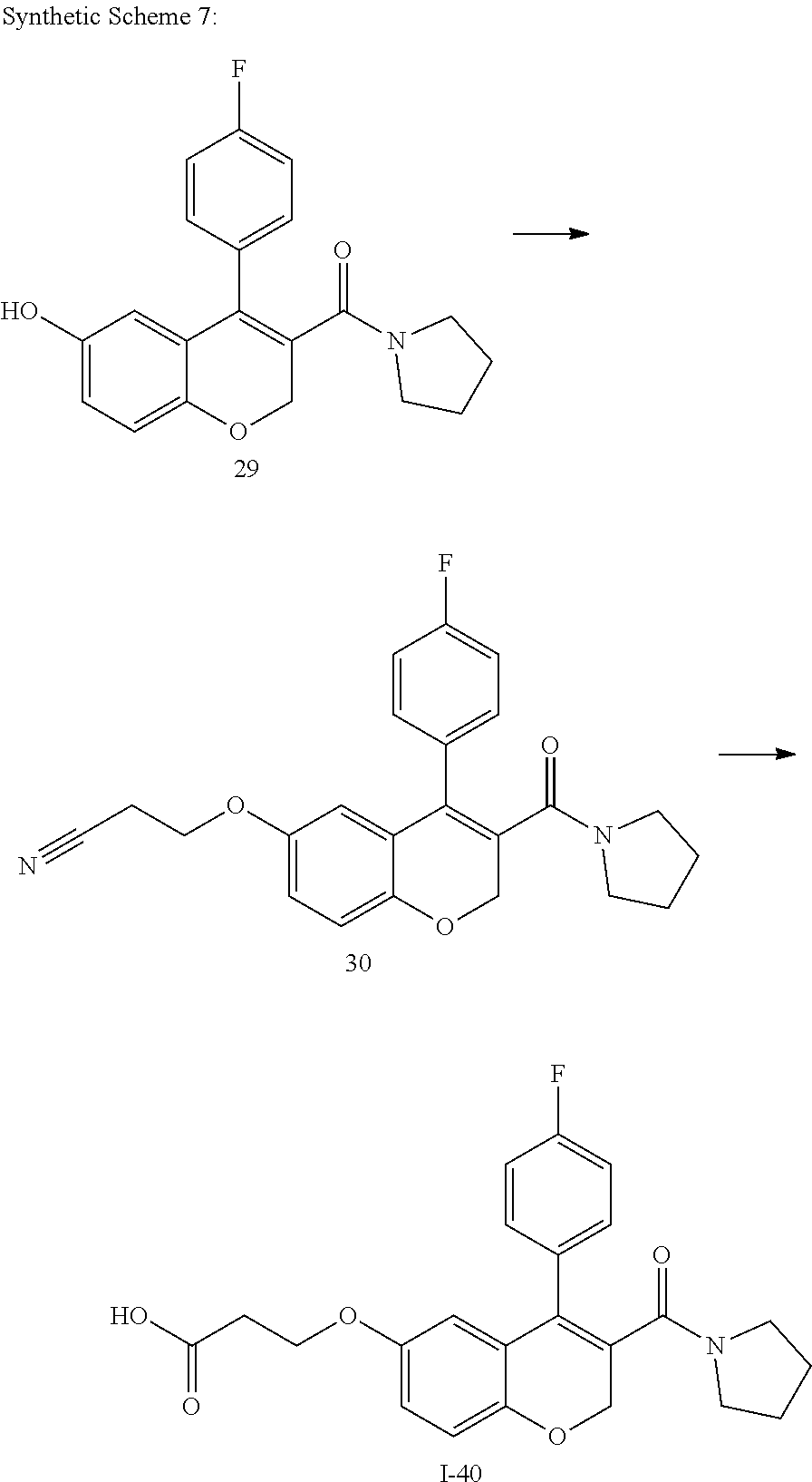- VAYXUHCXWFGWFG-UHFFFAOYSA-N C.C.N#CCCOC1=CC=C2OCC(C(=O)N3CCCC3)=C(C3=CC=C(F)C=C3)C2=C1.O=C(C1=C(C2=CC=C(F)C=C2)C2=CC(O)=CC=C2OC1)N1CCCC1.O=C(O)CCOC1=CC=C2OCC(C(=O)N3CCCC3)=C(C3=CC=C(F)C=C3)C2=C1.[I-40] Chemical compound C.C.N#CCCOC1=CC=C2OCC(C(=O)N3CCCC3)=C(C3=CC=C(F)C=C3)C2=C1.O=C(C1=C(C2=CC=C(F)C=C2)C2=CC(O)=CC=C2OC1)N1CCCC1.O=C(O)CCOC1=CC=C2OCC(C(=O)N3CCCC3)=C(C3=CC=C(F)C=C3)C2=C1.[I-40] VAYXUHCXWFGWFG-UHFFFAOYSA-N 0.000 description 1